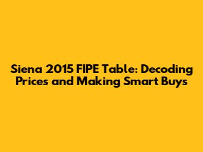 Hey there, car enthusiasts! Thinking about snagging a Fiat Siena 2015? Smart choice! This article is your ultimate guide to navigating the FIPE Table for the Siena 2015, helping you understand its price range and arming you with the knowledge to make a savvy purchase. We'll break down the FIPE Table, explain what influences the prices, and offer tips to ensure you get the best deal. So, buckle up, and let's dive in!