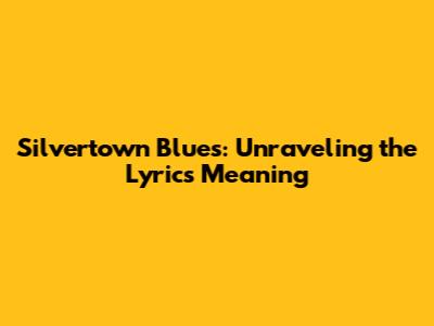 Silvertown Blues: Unraveling The Lyrics' Meaning