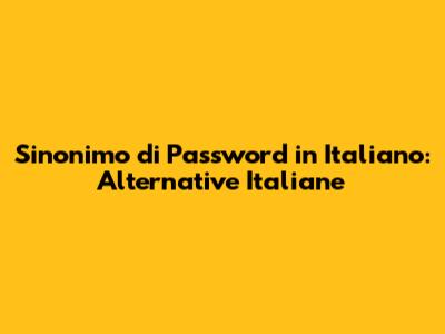Sinonimo Di Password: Alternative Italiane