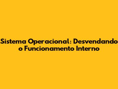 Sistema Operativo: Desvendando O Funcionamento Interno