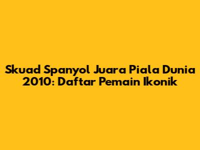 Skuad Spanyol di Piala Dunia 2010 adalah kombinasi dari pemain-pemain berbakat dan berpengalaman. Mereka bermain sebagai satu tim dan memiliki semangat juang yang tinggi. Kemenangan mereka di Piala Dunia 2010 adalah bukti dari kerja keras dan dedikasi mereka. Sampai jumpa di artikel berikutnya!