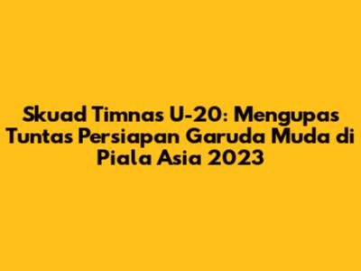 Skuad timnas U-20 memiliki potensi yang besar untuk bersaing di Piala Asia U-20 2023. Tim ini diperkuat oleh pemain-pemain muda berbakat yang memiliki kemampuan individu yang mumpuni. Di lini belakang, terdapat pemain-pemain yang memiliki kemampuan bertahan yang solid dan kemampuan membaca permainan yang baik. Di lini tengah, terdapat pemain-pemain yang memiliki kemampuan mengontrol bola, mengumpan, dan mengatur tempo permainan. Di lini depan, terdapat pemain-pemain yang memiliki kemampuan mencetak gol dan menciptakan peluang. Beberapa pemain kunci yang patut untuk diperhatikan adalah pemain yang memiliki pengalaman bermain di kompetisi profesional, pemain yang memiliki kemampuan individu yang menonjol, dan pemain yang memiliki mentalitas juara. Pemain kunci ini diharapkan dapat menjadi tulang punggung tim dan memimpin rekan-rekannya untuk meraih kemenangan. Selain itu, timnas U-20 juga memiliki kekuatan pada kekompakan tim dan semangat juang yang tinggi. Kekompakan tim akan memudahkan koordinasi di lapangan dan meningkatkan efektivitas permainan. Semangat juang yang tinggi akan membuat pemain tidak mudah menyerah dan terus berjuang hingga peluit akhir.
