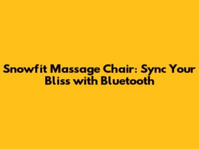 Snowfit Massage Chair: Sync Your Bliss With Bluetooth