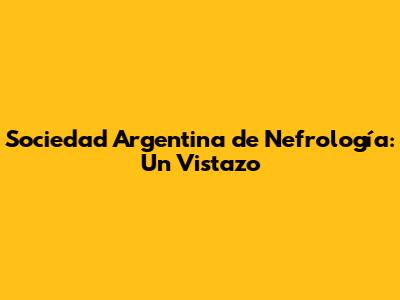 Sociedad Argentina De Nefrología: Un Vistazo