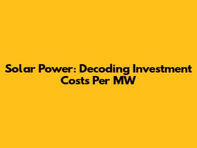Solar Power: Decoding Investment Costs Per MW