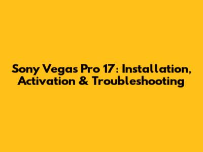 Sony Vegas Pro 17: Installation, Activation & Troubleshooting