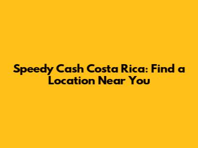 Hey guys! Looking for a Speedy Cash location in Costa Rica? You've come to the right place! If you're in a pinch and need some quick financial assistance, knowing where to find a Speedy Cash branch is super important. These guys are all about making it easy for you to access the funds you need, when you need them. Let's dive into how you can easily locate a Speedy Cash branch and what you can expect when you get there.