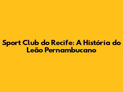 Sport Club Do Recife: A História Do Leão Pernambucano