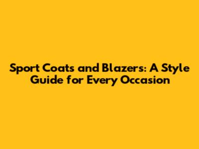 Sport Coats And Blazers: A Style Guide For Every Occasion