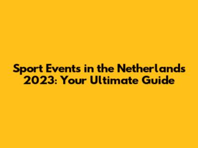 Sport Events In The Netherlands 2023: Your Guide