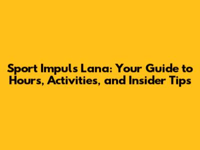 Sport Impuls Lana: Hours, Activities & Tips