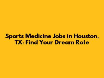 Sports Medicine Jobs In Houston, TX: Find Your Dream Role