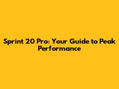 Sprint 20 Pro: Your Guide To Peak Performance