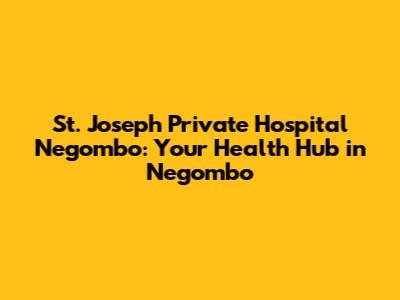 St. Joseph Private Hospital: Your Health Hub In Negombo