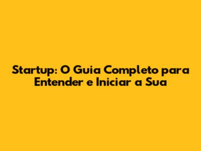 Startup: O Guia Completo Para Entender E Iniciar A Sua
