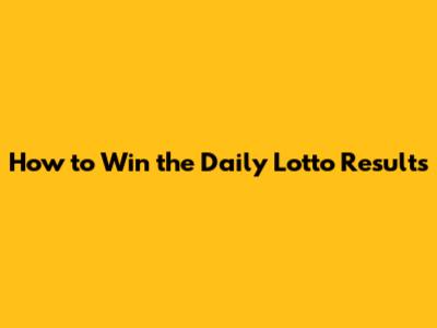 Strategies To Win The Daily Lotto