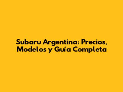 Subaru Argentina: Precios Y Todo Lo Que Necesitas Saber