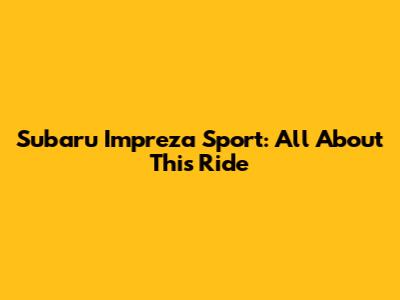 Subaru Impreza Sport: All About This Ride