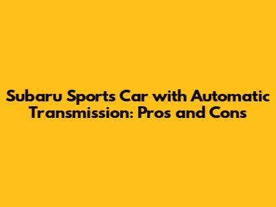 Subaru Sports Car With Automatic Transmission: Pros And Cons