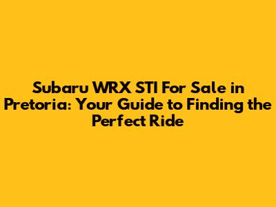 Where to Find Subaru WRX STI for Sale in Pretoria