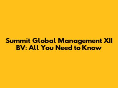 Summit Global Management XII BV: All You Need To Know