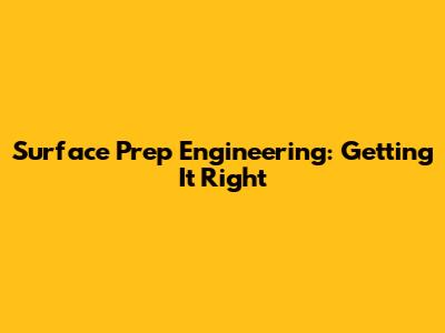 Surface Prep Engineering: Getting It Right