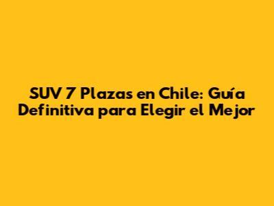 SUV 7 Plazas En Chile: Guía Definitiva Para Elegir El Mejor