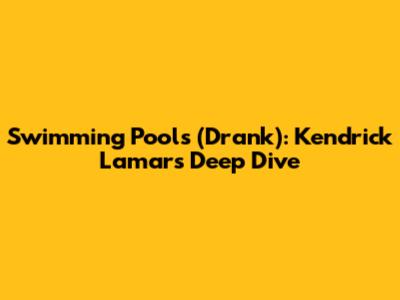 Swimming Pools (Drank): Kendrick Lamar's Deep Dive