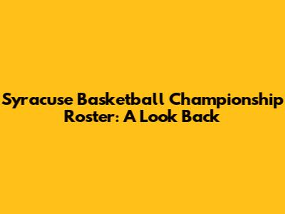 Syracuse Basketball Championship Roster: A Look Back
