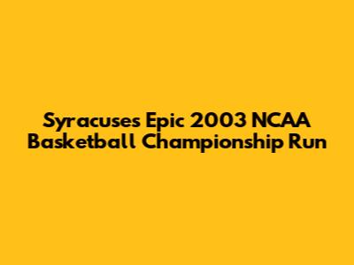 Syracuse's Epic 2003 NCAA Basketball Championship Run