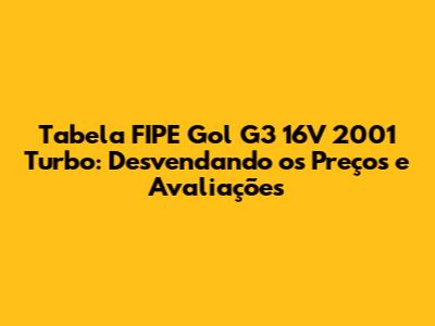 Tabela FIPE Gol G3 16V 2001 Turbo: Guia Completo E Atualizado