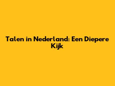 Talen In Nederland: Een Diepere Kijk