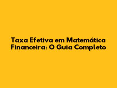 Taxa Efetiva Em Matemática Financeira: O Guia Completo
