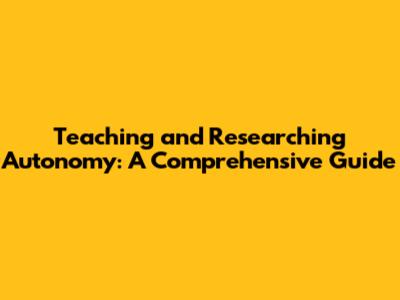 Teaching And Researching Autonomy: A Comprehensive Guide