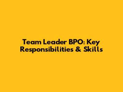 Team Leader BPO: Key Responsibilities & Skills