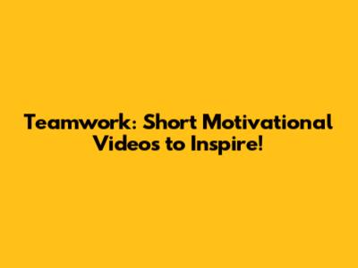 Teamwork: Short Motivational Videos To Inspire!