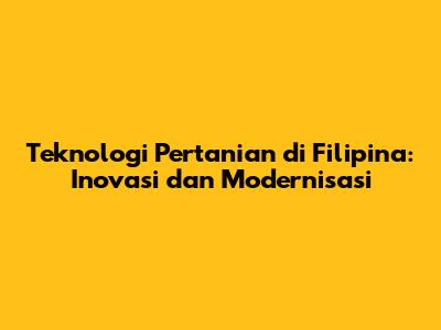Semoga artikel ini memberikan wawasan yang bermanfaat tentang teknologi pertanian di Filipina. Sampai jumpa di artikel berikutnya!