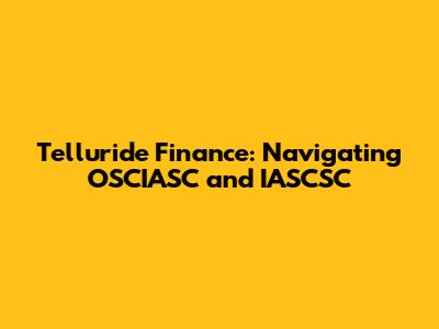 Telluride Finance: OSCIASC And IASCSC Insights