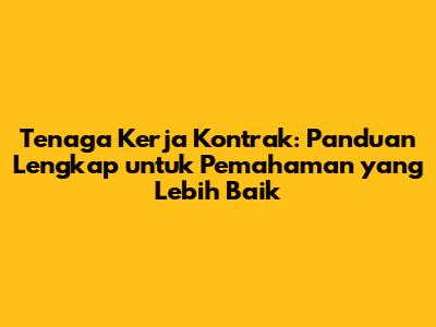 Tenaga kerja kontrak adalah bagian penting dari dunia kerja modern. Memahami pengertian tenaga kerja kontrak, jenis-jenisnya, hak-hak, dan kewajiban mereka sangat penting bagi pekerja maupun pemberi kerja. Dengan memahami hal ini, kita dapat menciptakan hubungan kerja yang saling menguntungkan dan mendukung pertumbuhan bisnis. Ingatlah untuk selalu mematuhi peraturan perundang-undangan yang berlaku dan membangun komunikasi yang baik untuk menciptakan lingkungan kerja yang positif.