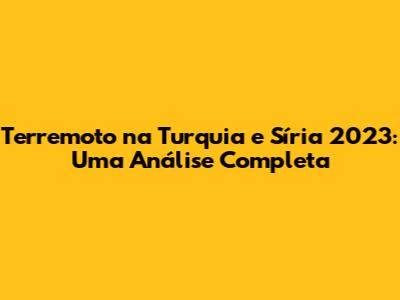 Terremoto Na Turquia E Síria 2023: Uma Análise Completa