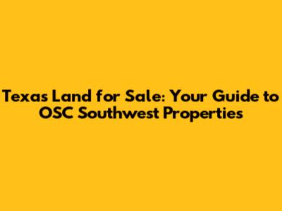 Texas Land For Sale: Your Guide To OSC Southwest Properties