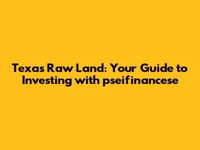 Hey guys! Thinking about investing in Texas raw land? You've come to the right place! Investing in raw land, especially in a state as vast and opportunity-rich as Texas, can be a game-changer. But let's be real, it can also feel like navigating a maze if you don't know what you're doing. That's where pseifinancese comes in. We're here to break down everything you need to know, from finding the perfect plot to understanding the financial ins and outs, so you can make smart, informed decisions and potentially score big in the Texas land market.