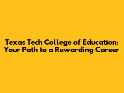 Texas Tech College Of Education: Your Path To A Rewarding Career