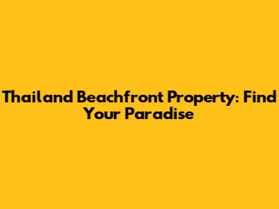 Thailand Beachfront Property: Find Your Paradise