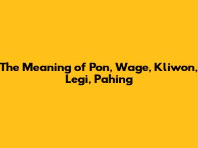 The Meaning Of Pon, Wage, Kliwon, Legi, Pahing