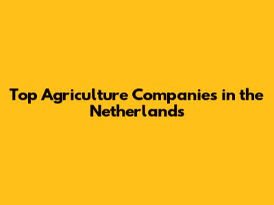 Top Agriculture Companies In The Netherlands