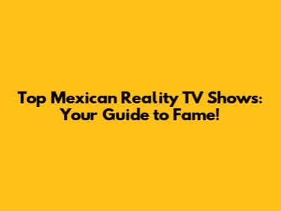 Top Mexican Reality TV Shows: Your Guide To Fame!