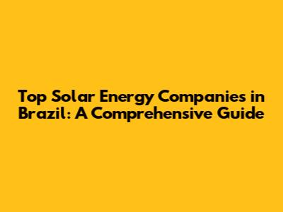 Top Solar Energy Companies In Brazil: A Comprehensive Guide