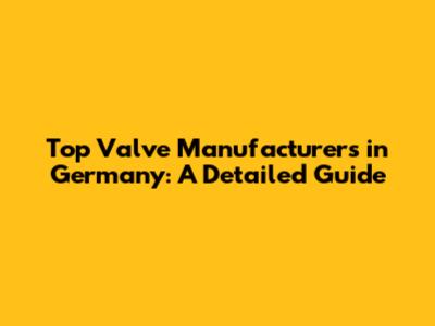 Top Valve Manufacturers In Germany: A Detailed Guide