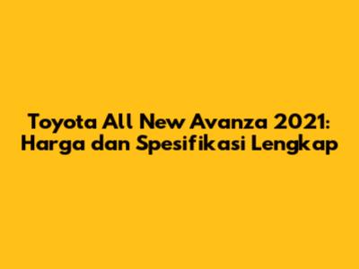 Toyota All New Avanza 2021: Harga Dan Spesifikasi Lengkap